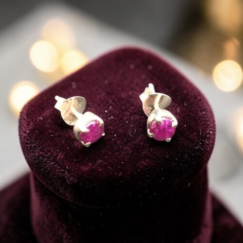Boucles d’oreilles Puces argent 925, pierres facettées Rubis