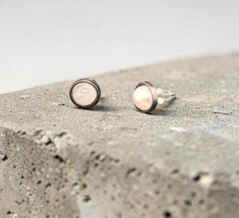 Boucles d’oreilles puces, quartz rose