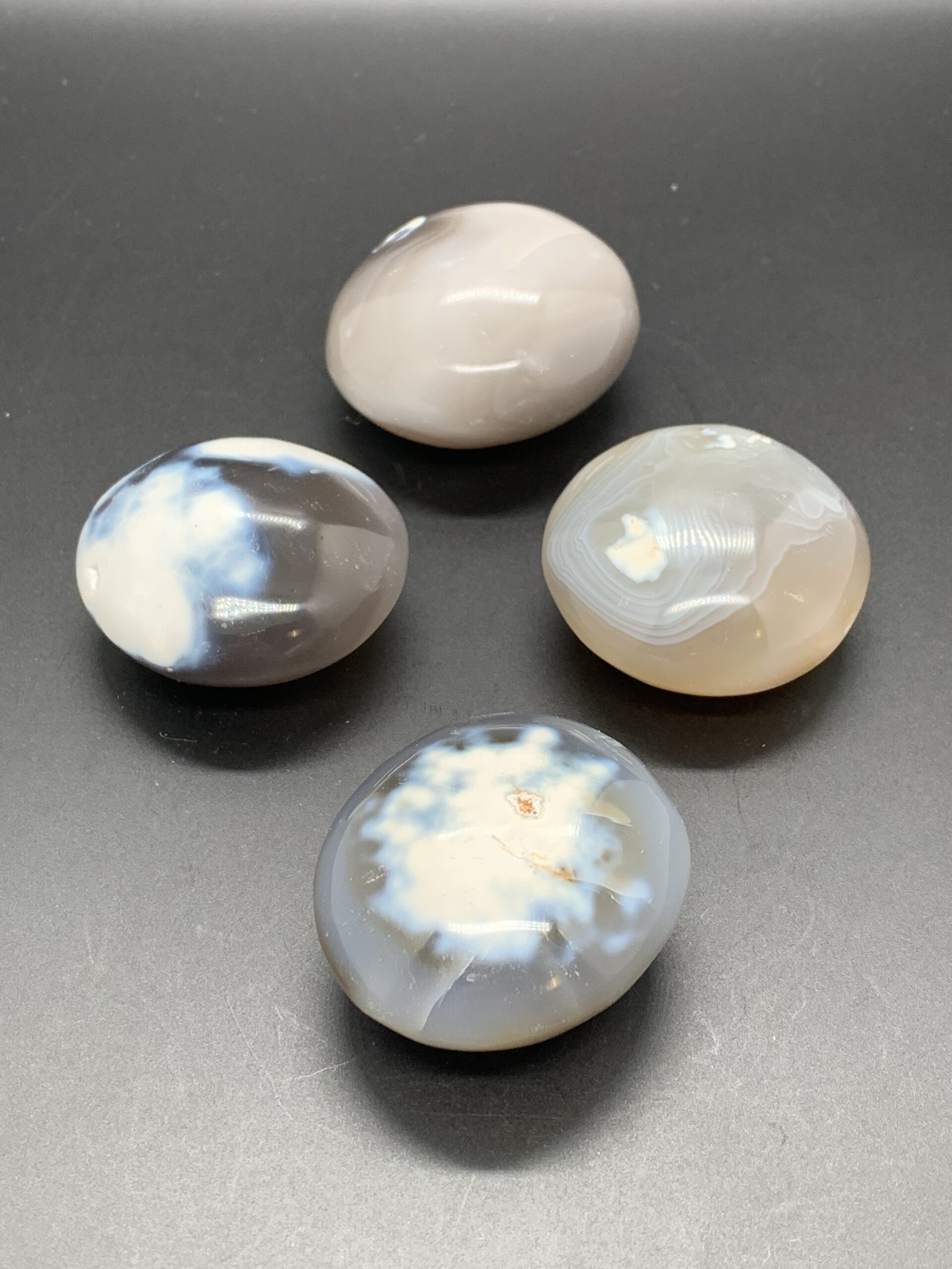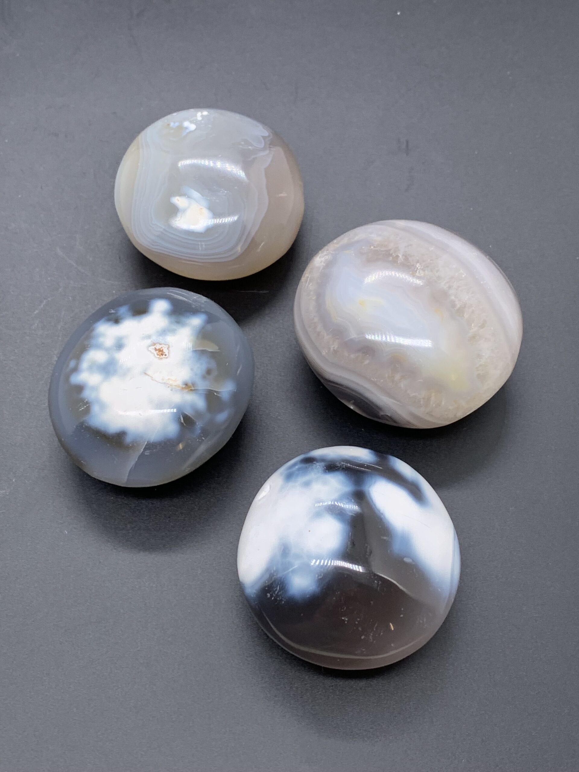 L’agate bleue gris (ou agate orque), réduit les craintes et rassure.