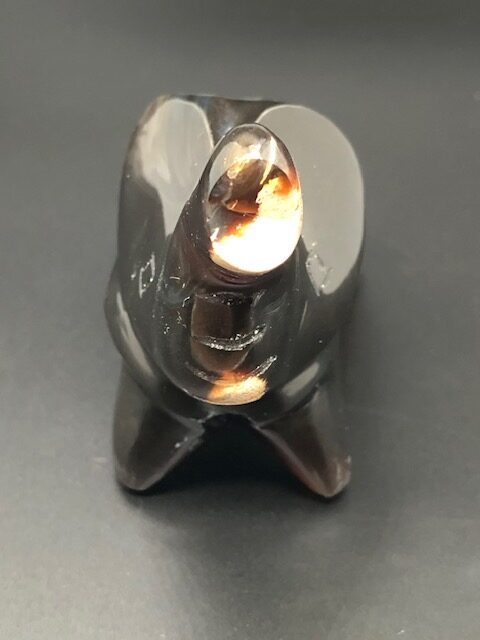 L’ambre bleu d’Indonésie est une variété d’ambre qui provient de la résine d’une espèce d’arbres désormais éteinte l’Hyménaea Protera qui vivait il y a entre 25 et 40 millions d’années. Sa fluorescence vive sous la lumière ultraviolette est due aux hydrocarbures présents dans cet dans ambre qui ont la capacité de modifier la fréquence de la lumière ultraviolette solaire, créant ainsi une charmante lueur bleue.