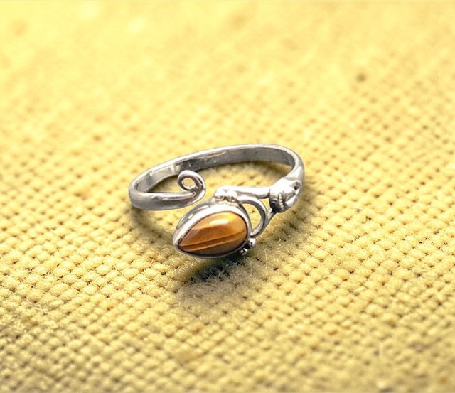 Bague en argent 925 avec pierre fine en œil de tigre.