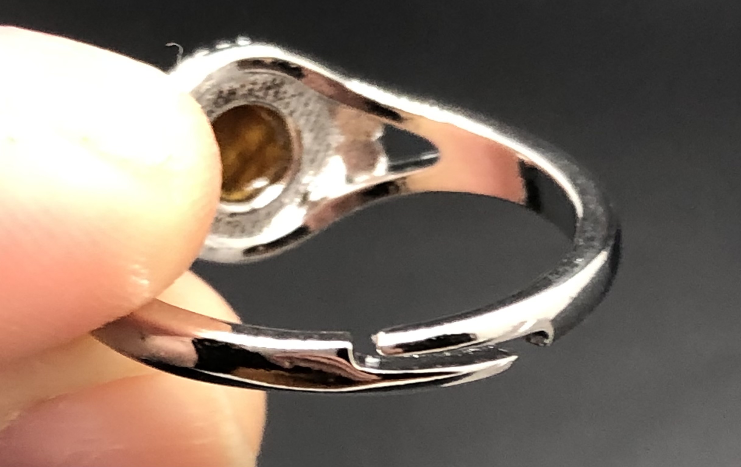 Bague en laiton avec couche de rhodium pour empêcher ce dernier de s’oxyder. Il est également hypoallergénique.