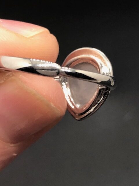Bague en laiton avec couche de rhodium pour empêcher ce dernier de s’oxyder. Il est également hypoallergénique.