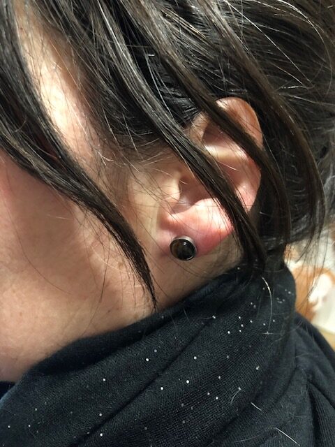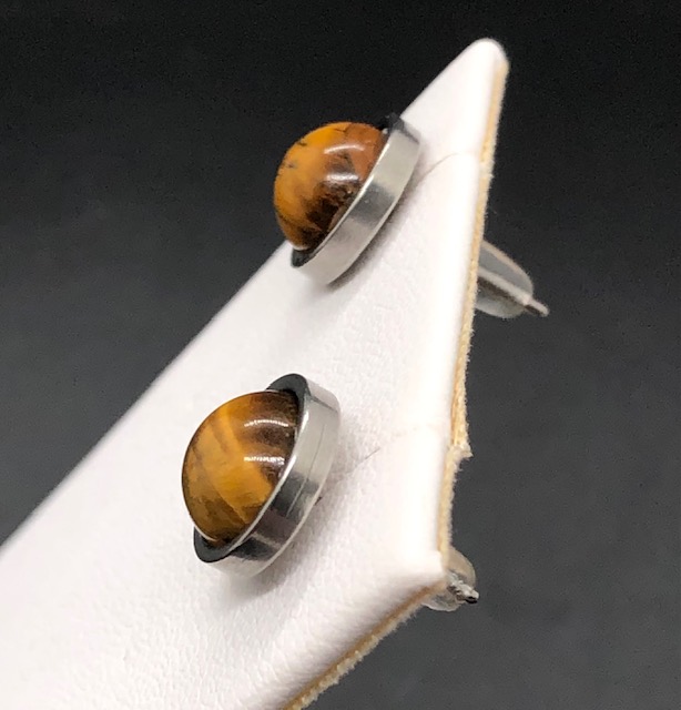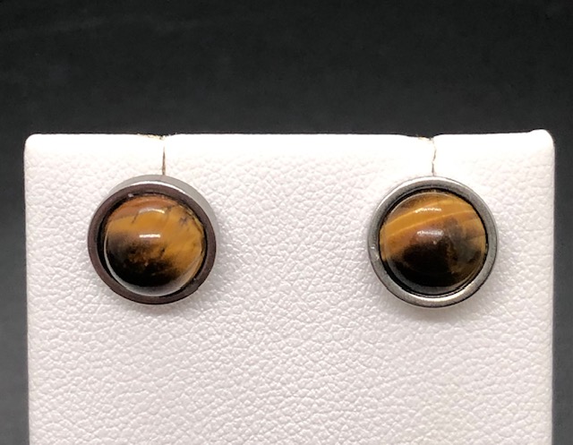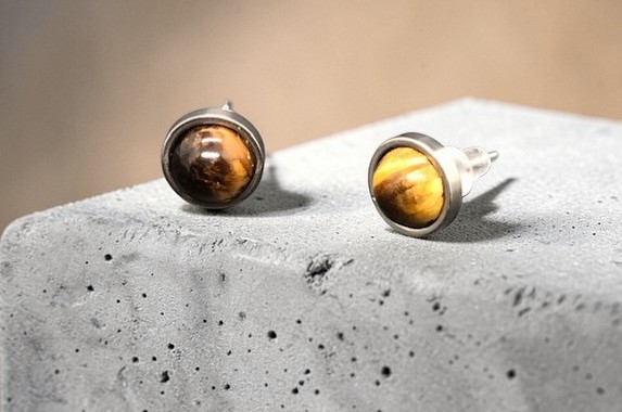 Boucle d’oreilles en acier inoxydable avec pierre fine en œil de tigre.