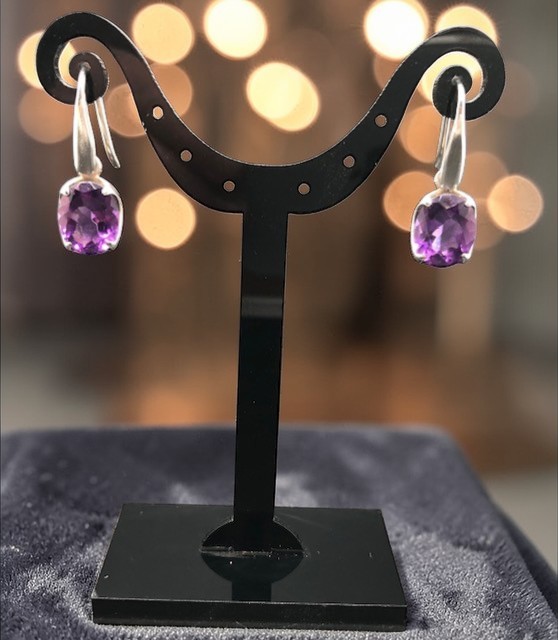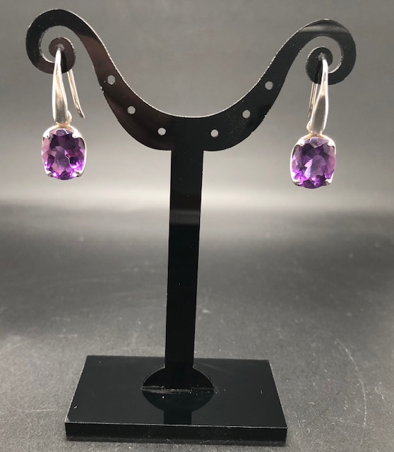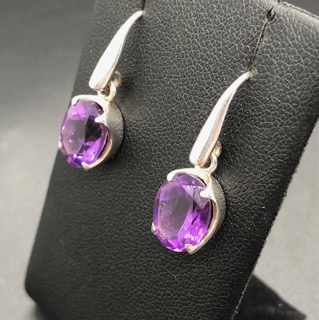 Boucles d’oreilles argent 925, pierres facettées en Améthyste