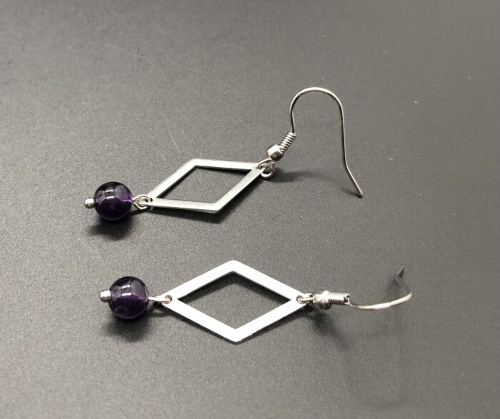 Boucles d’Oreilles Éoline en Acier inoxydable et Pierres Naturelles 6 mm Améthyste.