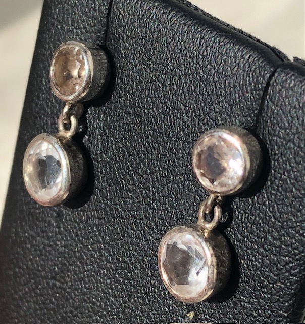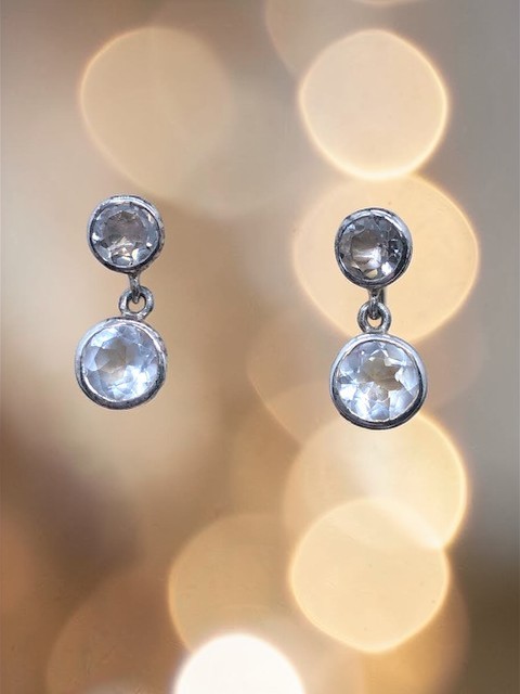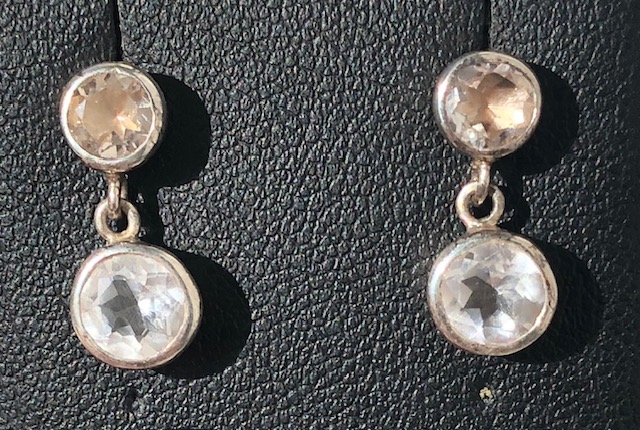 Boucles d’oreilles et pendentif argent 925, pierres facettées Cristal de Roche