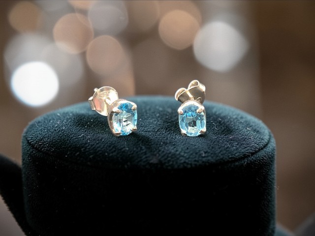 Boucles d’oreilles  et pendentif argent 925, pierres facettées Topaze