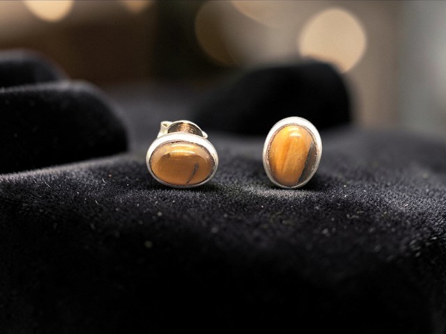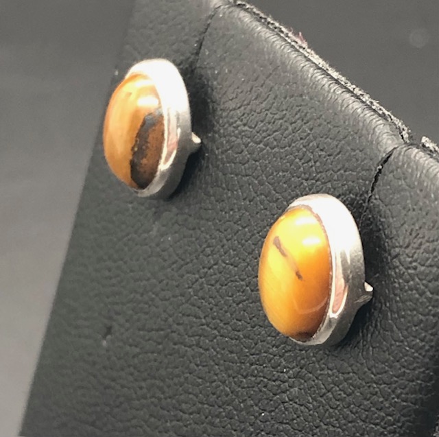 Boucles d’oreilles et pendentif argent 925, pierres Œil de Tigre