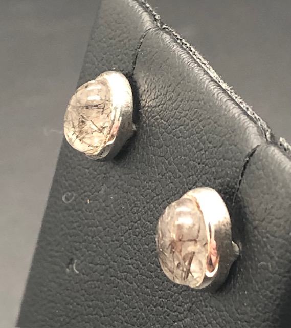 Boucles d’oreilles  et pendentif argent 925, pierres Quartz Rutile