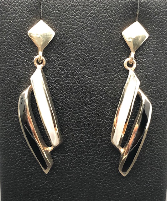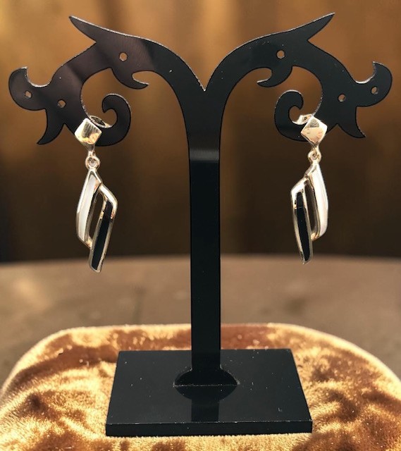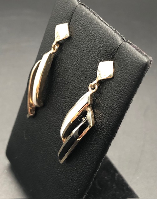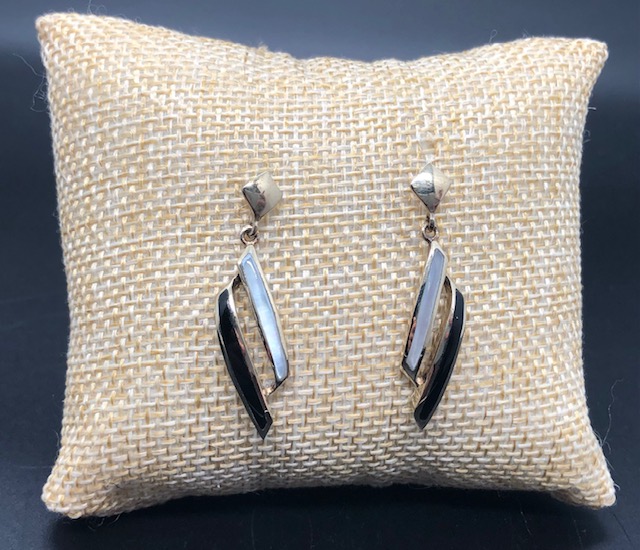 Boucles d’oreilles Puces Vermeil (Or et Argent 925), pierres Onyx et Nacre
