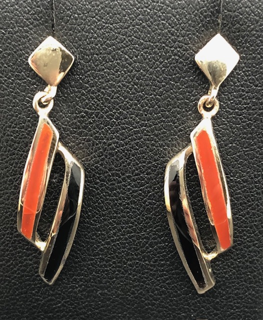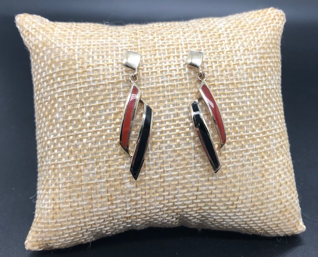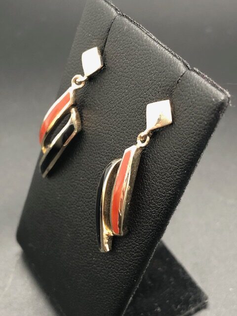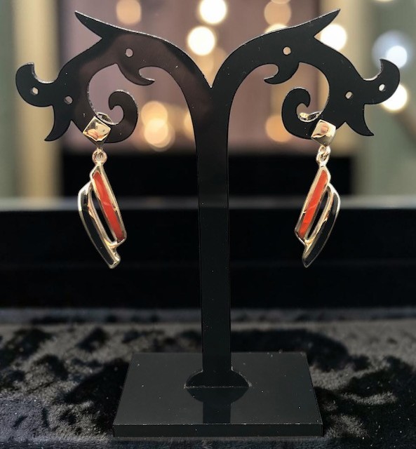 Boucles d’oreilles Puces Vermeil (Or et Argent 925), pierres Onyx et Cornaline