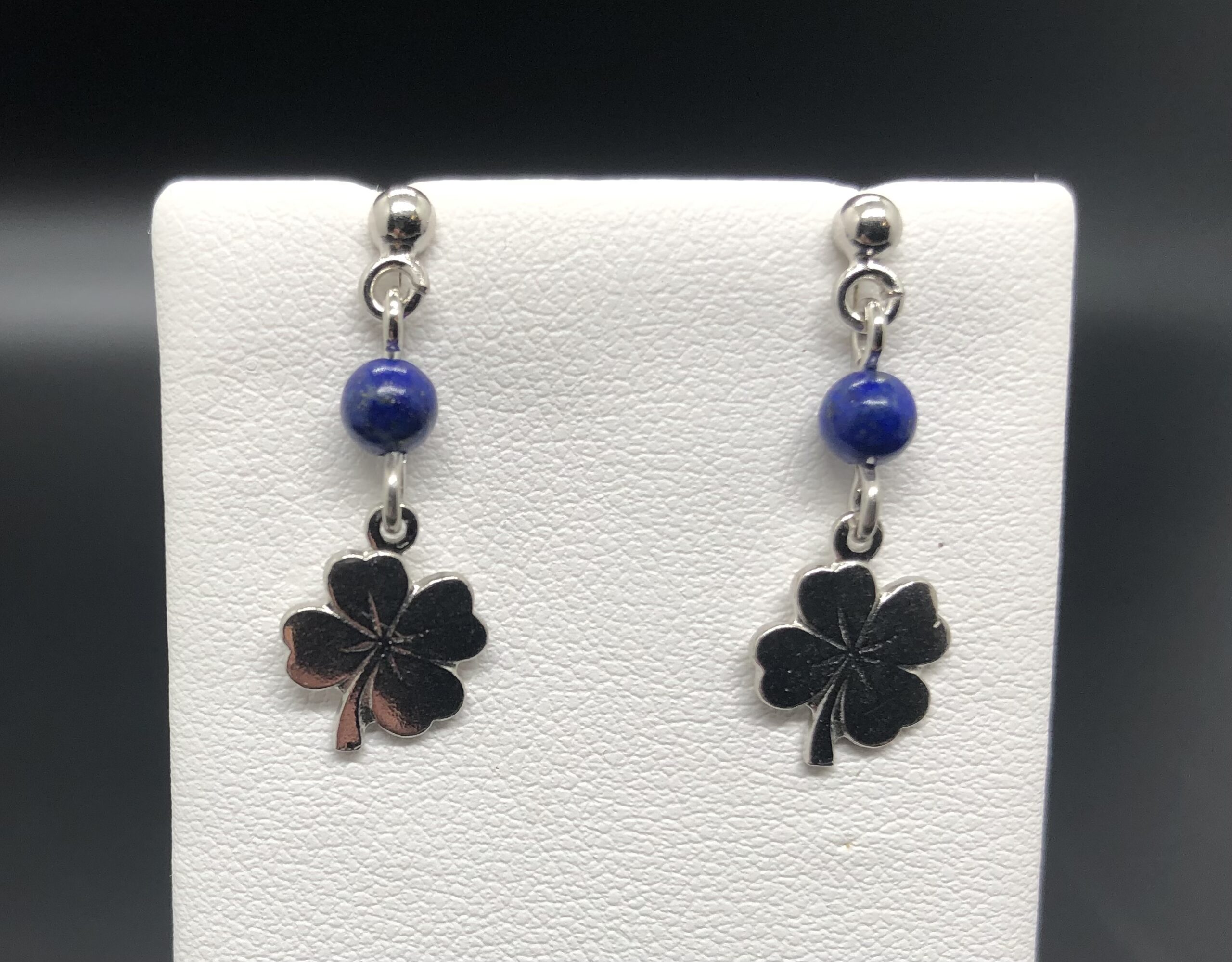 Boucles d’Oreilles Trèfle à 4 Feuilles en Argent et Pierres Naturelles 4mm Lapis-lazuli.