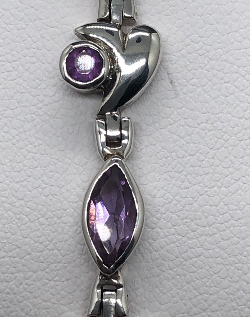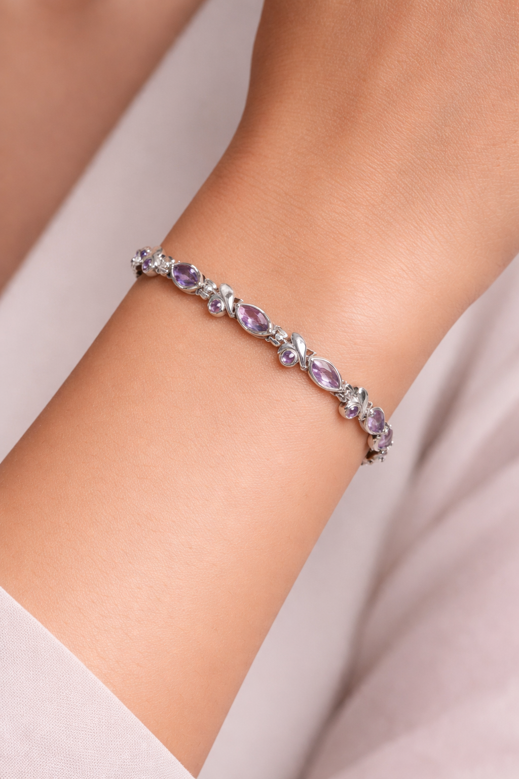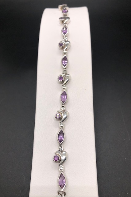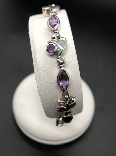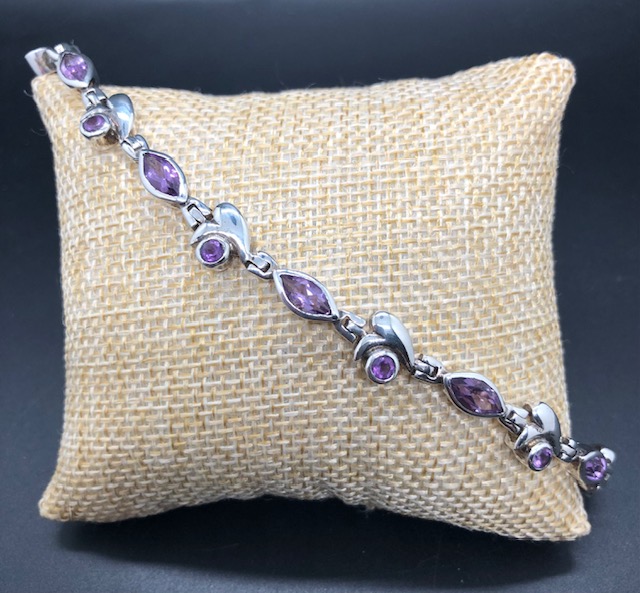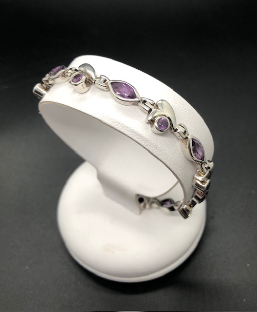 Bracelet en argent 925, pierres facettées en Améthyste