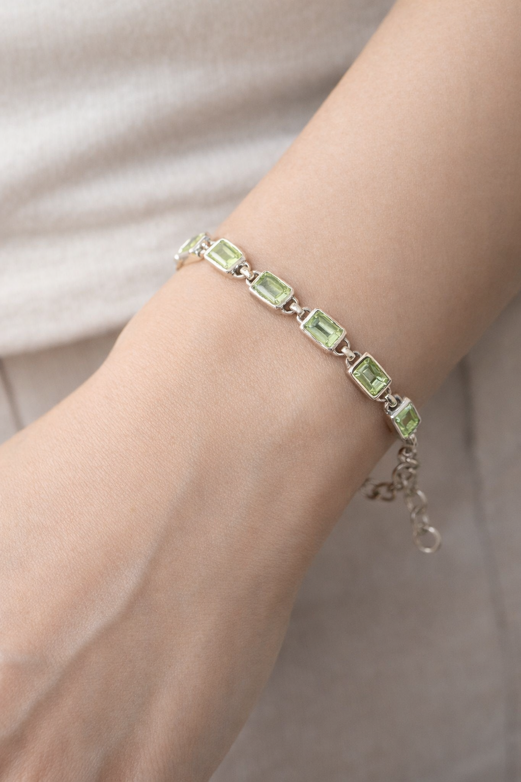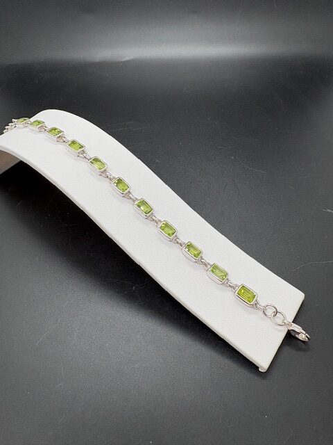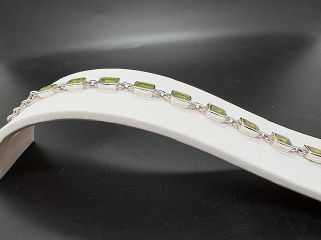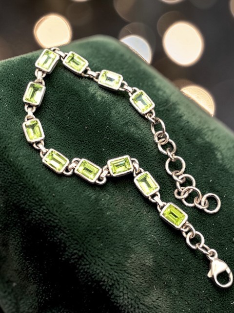 Bracelet en argent 925, pierres en olivine