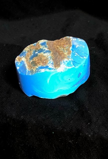 L’ambre bleu d’Indonésie est une variété d’ambre qui provient de la résine d’une espèce d’arbres désormais éteinte l’Hyménaea Protera qui vivait il y a entre 25 et 40 millions d’années. Sa fluorescence vive sous la lumière ultraviolette est due aux hydrocarbures présents dans cet dans ambre qui ont la capacité de modifier la fréquence de la lumière ultraviolette solaire, créant ainsi une charmante lueur bleue.