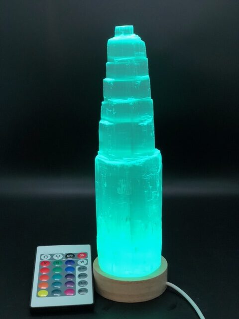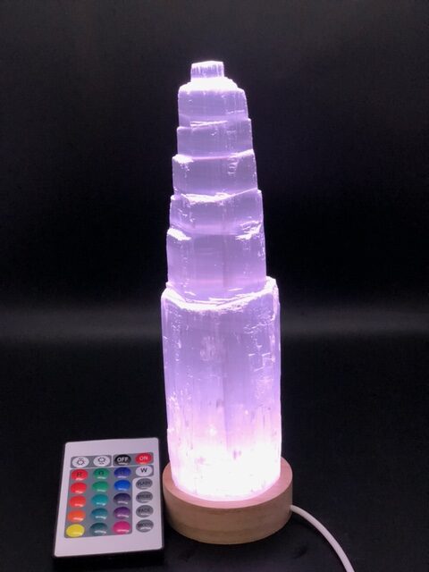 La pierre sélénite possède des vertus relaxantes, elle aide à se détendre(pour plus de précisions, voir la description détaillée en dessous), lumière modulable grâce à la télécommande en fixe ou couleur alternée.