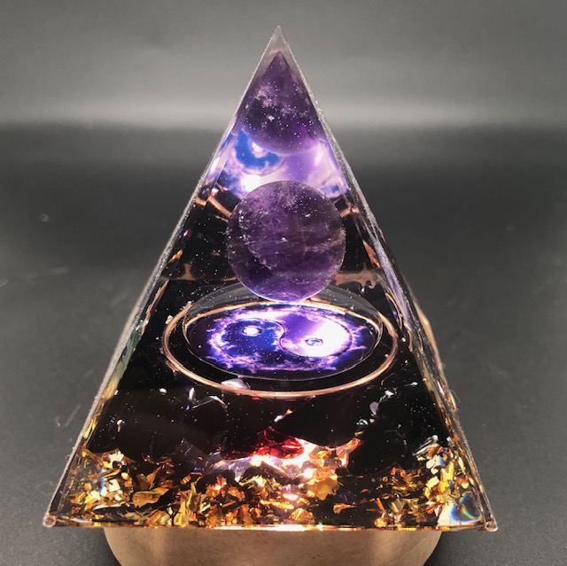 Les orgonites pyramides sont composées de cristaux, de pierres fines, de résine et de particules de métalliques.