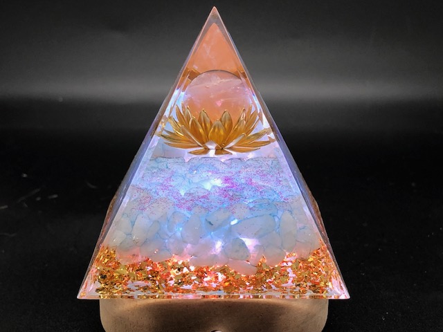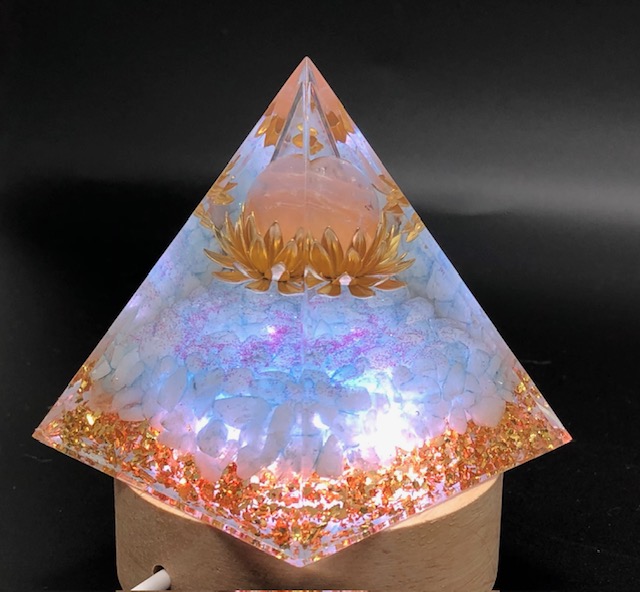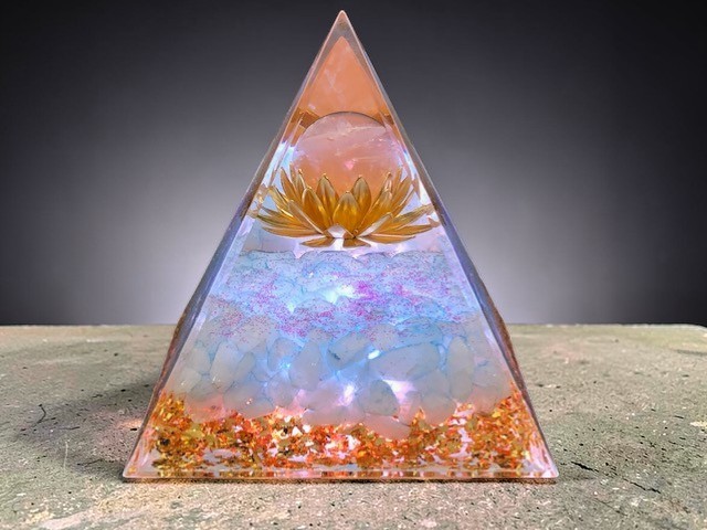Les orgonites pyramides sont composées de cristaux, de pierres fines, de résine et de particules métalliques.
