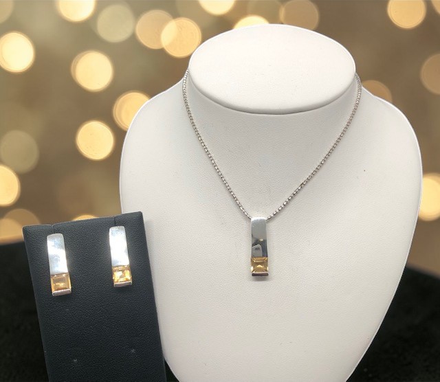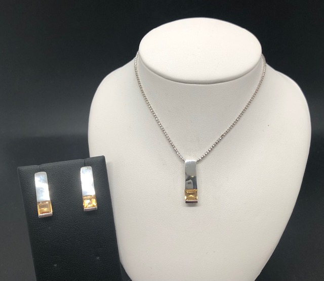 Boucles d’oreilles  et pendentif argent 925, pierres Citrine