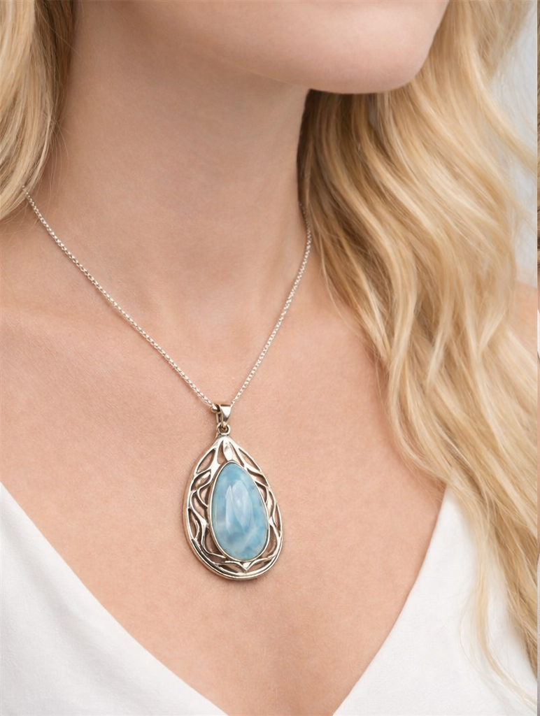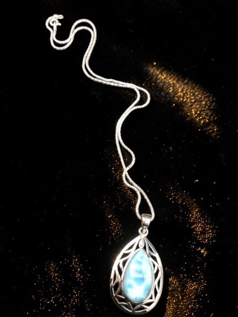 Pendentif en argent 925, pierre Larimar