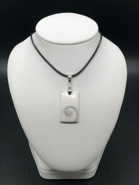Pour porter ce pendentif vous avez le choix entre un collier en coton ciré noir de 45 cm avec rallonge de 5 cm en acier (longueur total 50 cm),