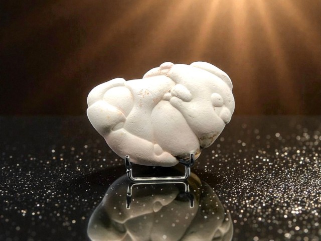 La pierre des fées est composée principalement d’argile fossilisée et de carbonate de calcium ce qui lui confère une texture très douce au toucher.